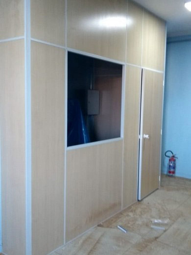 A instalação de divisórias para escritório preço de madeira possibilita o acabamento em vinílico ou tecido, personalizando o local.